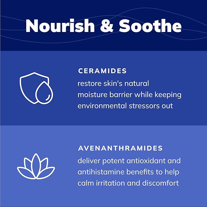 - ๐๐ซ๐จ๐ฆ๐จ๐ญ๐๐ฌ ๐๐ค๐ข๐ง ๐๐๐ซ๐ซ๐ข๐๐ซ ๐๐ง๐ญ๐๐ ๐ซ๐ข๐ญ๐ฒ - Enriched with ceramides and avenanthramides to help calm itching and irritation, restore moisture, and support the skinโs natural immune system.
