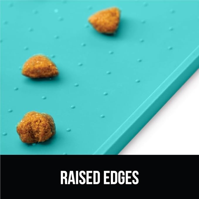 GORILLA GRIP 100% Waterproof Raised Edge BPA Free Silicone Pet Feeding Mat, Dog Cat Food Mats Contain Spills Protects Floors, Placemats for Cats and Dogs Water Bowl, Pets Accessories 16x10, Turquoise
