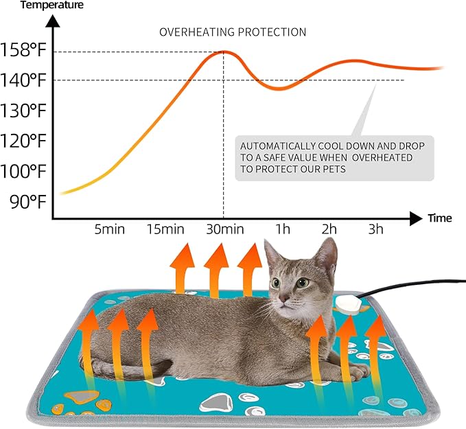 - 【SAFETY FIRST】- The cat heating pad is a built-in intelligent overheat protection sensor, will maintain a constant temperature you set when your pet sleep on it