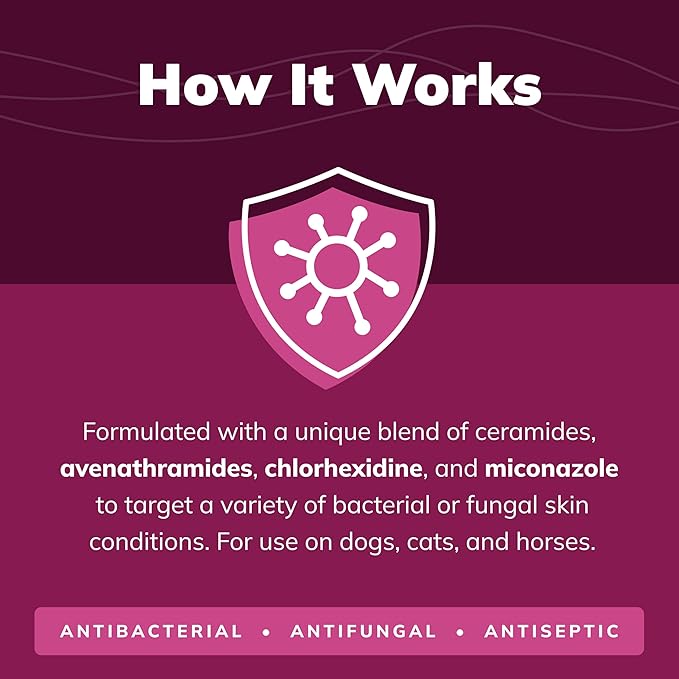 • Contains chlorhexidine and miconazole for antiseptic activity on the skin
