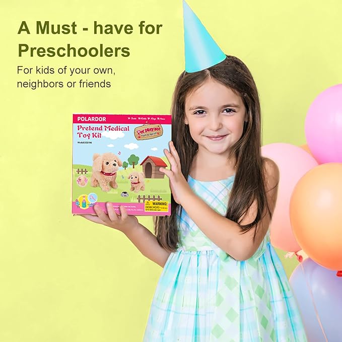 - [Lovely Pretend Role Play]: The dog set is used for roles play as doctor, dentist and nurse. Parents can teach kids some medical knowledge, kids will learn a lot. Role playing game will develop your chirldren imagination and social skills when entertainment, your little angel is not afraid of doctors anymore