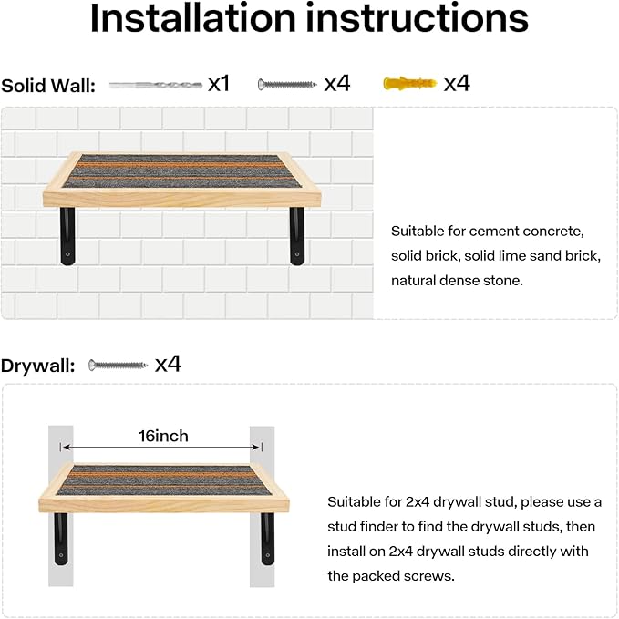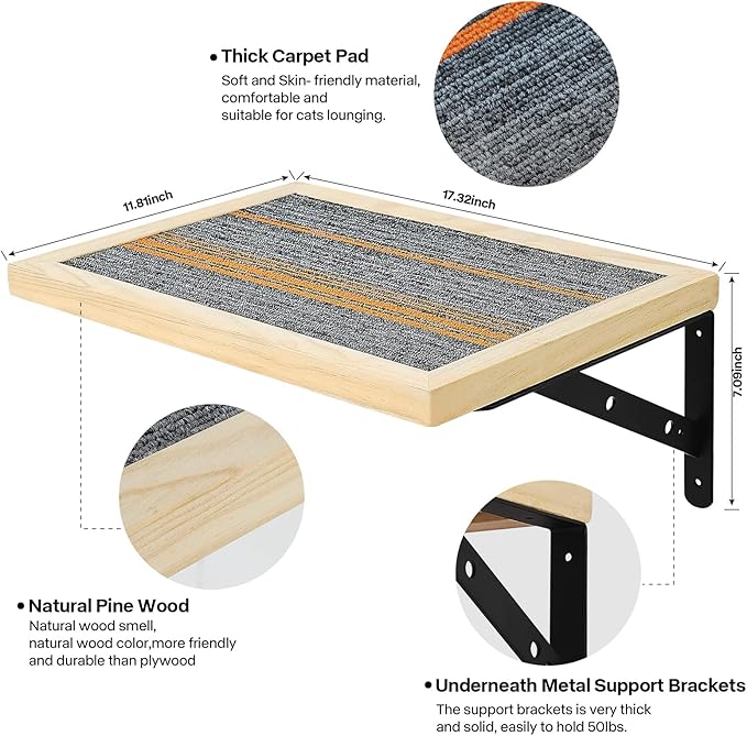 Handcrafted Wood Cat Perch & Shelves - Floating Shelf with Cat Hammock Seat, Lounge Bed, Climbing Steps for Relaxing, Playing and Scratching