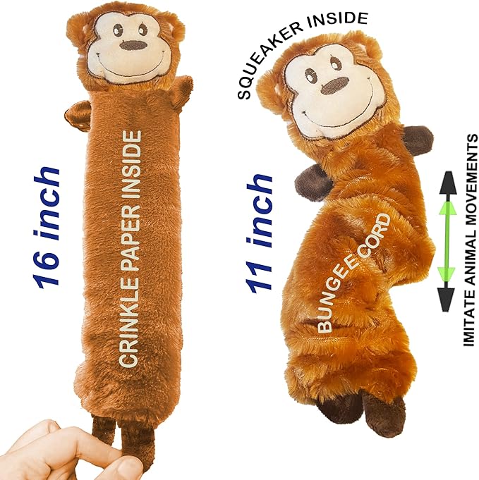 - NO STUFFING, NO MESS: Our new set of animal character crinkle toys, is now stuffingless, which means no mess to clean up.