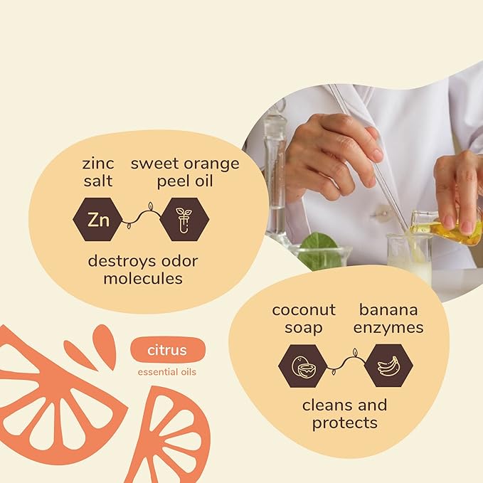 - CITRUS: Orange peel oil combined with distilled lemon water gives a fresh and clean fragrance.