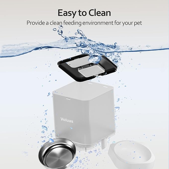 - User Friendly Operation: Intuitive LCD screen makes setup and programming a breeze; Removable cleanable parts foster a healthy environment for your pet’s food; Included Desiccant bag helps maintain the freshness of the cat food, keeping it crunchy for biting