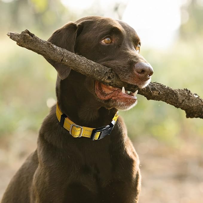 Hikiko Martingale Dog Collars Reflective Nylon Dog Collar with Quick Release Buckle Adjustable Training No Slip Dog Collar (Small, Yellow)