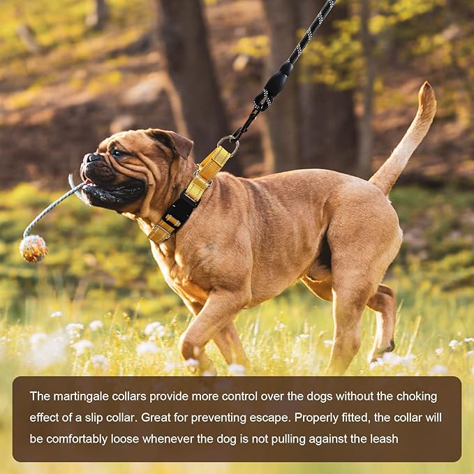 - 【Durability】Soft nylon dog collar and heavy-duty hardware won't easy loose or fray; Strict pulling test conducted before production. Properly fitted, the martingale dog collar will be comfortably loose whenever the dog is not pulling against the leash