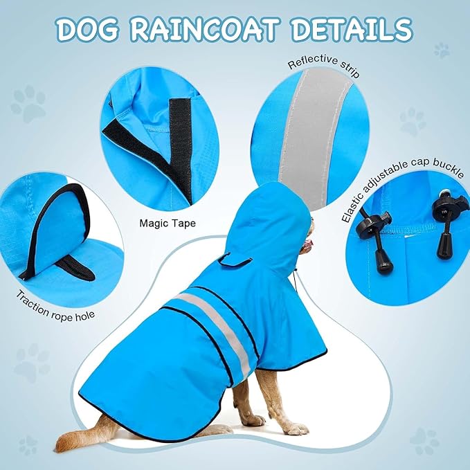 - 【WATERPROOF DOG RAINCOAT】This dog raincoat is made of waterproof fabric to keep your pet dry and warm when walking in the rain. It's lightweight and comfortable for your dog to wear all day long.