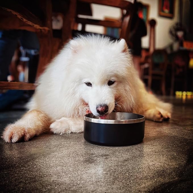 IKITCHEN Dog Bowl for Food and Water, 40 Oz Stainless Steel Pet Feeding Bowl, Durable Non-Skid Double Wall Insulated Heavy Duty with Rubber Bottom for Medium Large Sized Dogs (40 Ounces/5 Cup, Black)