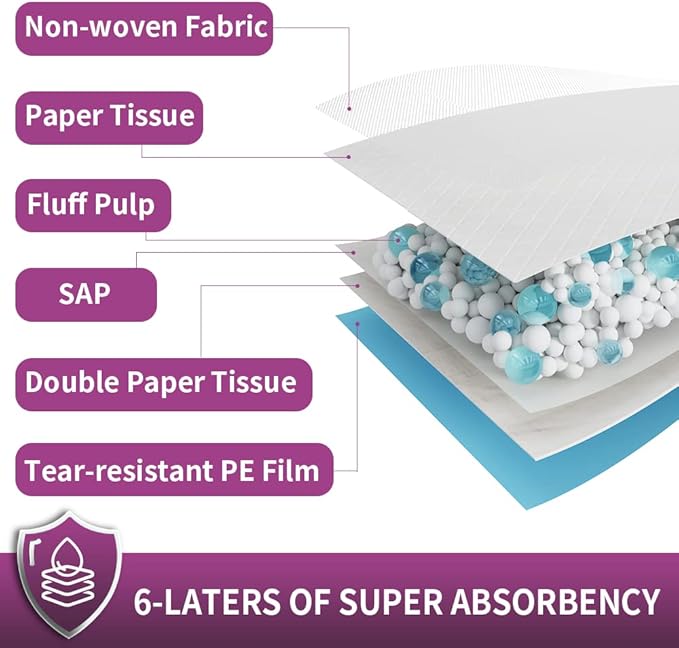 - 【SUPER ABSORBENT & Thicker】Thickened wee wee pads for dogs and 6-layer protection design makes our extra large dog pee pads more absorbent than the most xl puppy pads on the market.