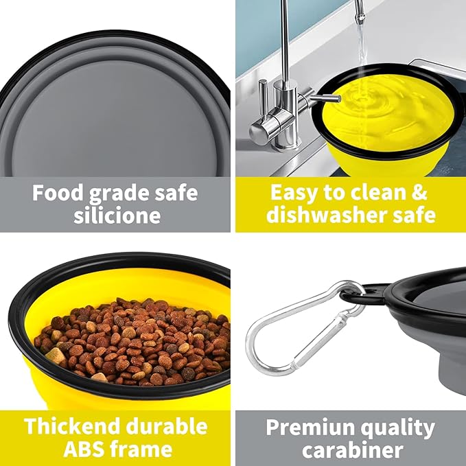 - ¡¾PORTABLE & COLLAPSIBLE BOWLS¡¿- Our travel water bowl for dogs pack down flat and fit right in your dog travel bag with the rest of your pet supplies. This essential piece of dog hiking gear is the best way to give them food or water on walks, when hiking, at dog parks, and on long car rides!