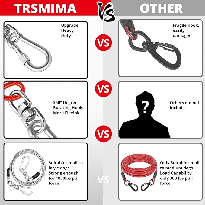 - š¶High Tensile Strength:jenico dog wire leash cable is a heavy duty dog chain, made of 5mm high-strength galvanized steel wire rope with PVC coating,which are professionally tested for tensile and quality, it can withstand up to 85KN of tensile force.providing superior strength and durability against breakage!Good corrosion resistance, will be reliable to use.
