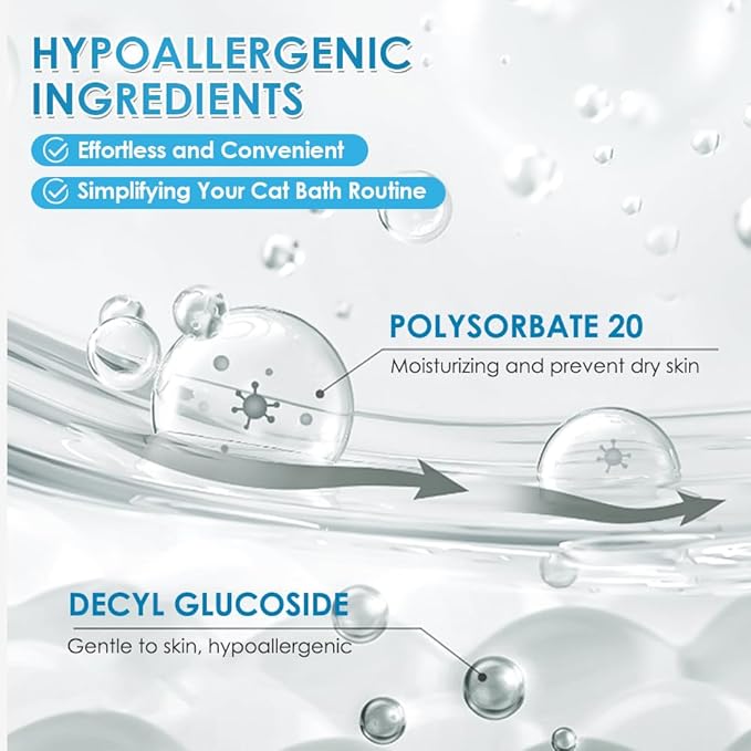 - šø A COMFORTABLE EXPERIANCE - Our waterless cat shampoo( or waterless shampoo) offers a Ph Balanced, neutral clean, mild scent and tearless formula, providing a comfortable and cozy experience to your cat while giving it a cat bath.