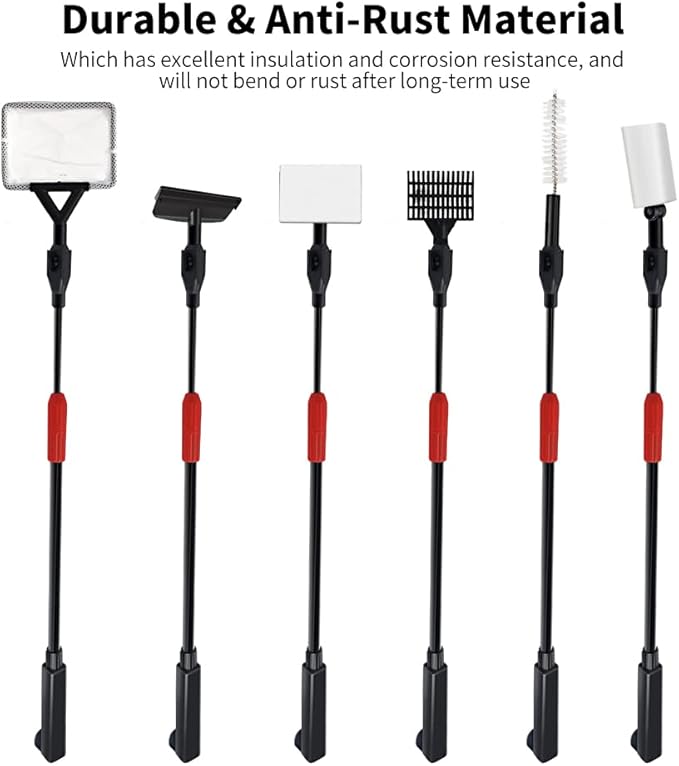 - Good and Anti-Rust Material: The 6 in 1 fish tank cleaning tools are made of ABS plastic material, has good insulation and corrosion resistance. Will not easily bend or rust after long use. Salt water aquarium kit helps you cleaning the fish tank easily
