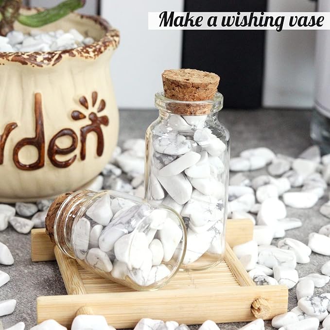 Howlite Aquarium Gravel Rocks Natural Tumbled Healing Crystal Chips Bulk Gemstones Crushed Stones for Fountain Vase Filler Planters Decorative Fish Tank Potted Reiki Energy Balancing 0.45lb