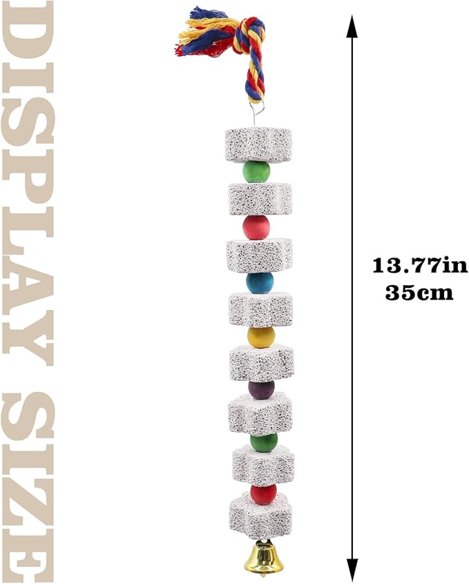 - 【Perfect Design】: The parakeet stone toy is polished into a star shape, which is both beautiful and more convenient for parrots to chew. The transition between the grinding stones is made by colorful beads, which can attract the attention of parrots on the one hand, and decorate your pet's cage on the other. There is a bell at the bottom of the bird's chew toy, which will emit a pleasant ringing sound when the bird pecks.