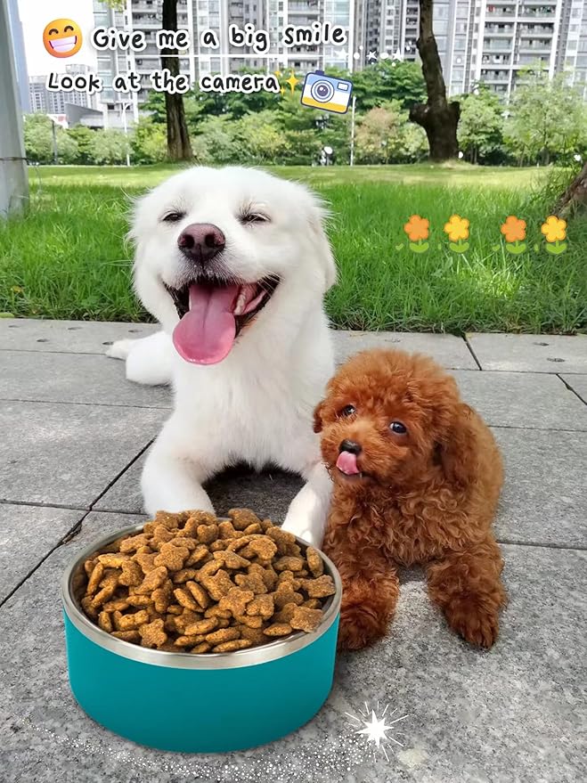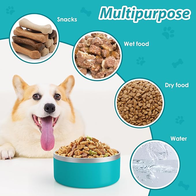 IKITCHEN Dog Bowl for Food and Water, 64 Oz Stainless Steel Pet Feeding Bowl, Durable Non-Skid Double Wall Insulated Heavy Duty with Rubber Bottom for Medium Large Dogs (64 Ounces/8 Cup, Lakeblue)