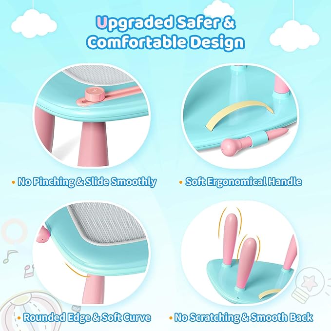 - Sturdy Drawing Table or Doodle Board: Designed with a durable screw-on system and premium legs, this drawing board is built to handle heavy use without a hint of wobbling or risk of breakage. Plus, the table’s legs are easily detachable and adjustable in three different heights, offering the perfect fit for your little artist’s comfort. Let their creativity flow with a stable, flexible setup that grows with them—ideal for endless hours of drawing fun!