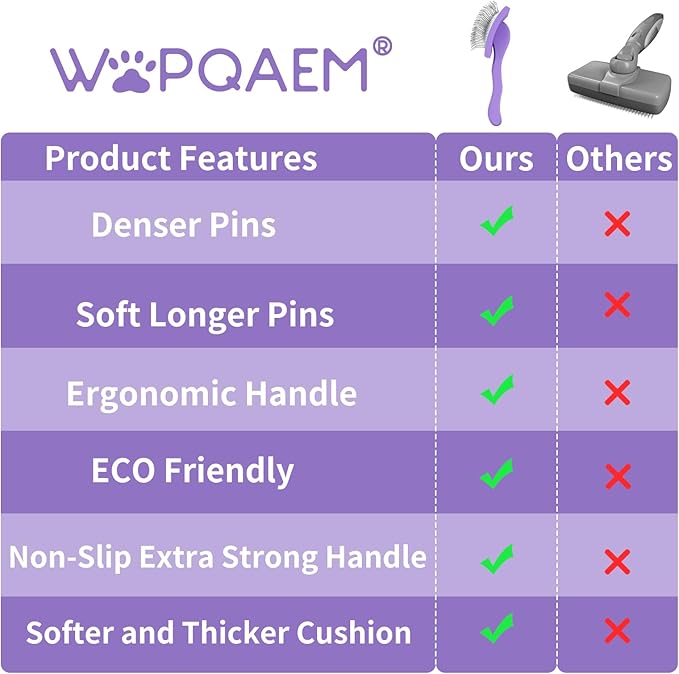 - Comfortable Grooming Anytime: Whether after outdoor adventures or regular grooming, the slicker brush’s long pins gently glide through thick, curly coats without irritating your pet’s skin.