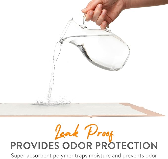 - THICK PAD WITH SOFT TOUCH TOP LAYER: Top layer is soft to the touch for added comfort. Multilayer pad. Top layer is soft to the touch for added comfort. Middle layer contains thick absorbent fluff with gelling polymer (just like in high end diapers) to absorb, trap, and contain liquid aiding in a dry feel while combating odors. Bottom layer is a strong waterproof base