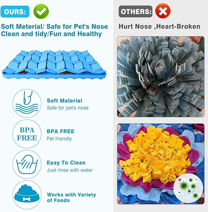 - ✅FUN AND REDUCE ANXIETY:Hiding food and snacks in the foraging mat can stimulate the dog's interest, train the sense of smell and bring fun at the same time, let them enjoy the process of foraging and avoid destroying the furniture due to boredom.