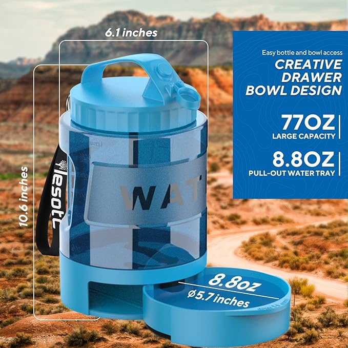- 77 oz Large Capacity Design: Outdoor dogs need a larger capacity dog water bottle, especially in the hot summer. Our exclusively customized 77 oz dog travel water bowl dispenser can provide safe, fresh, healthy and enough water for your small, medium, large dogs at any time. Also perfect for travel, camping, longer car trips, road trips, hiking, hunting or during play in the dog park