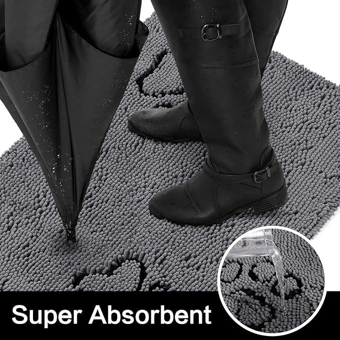 - Soft & Cozy - Enjoy ultimate comfort with our luxurious chenille mat beneath feet. This doormat is 1 inch thick, offering plush softness for bare feet and pet paws. It also soaks up wet spills from pets quickly, working well in a crate, on the dogs/cats bed mat, under the feeding bowls