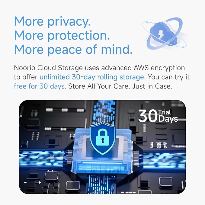 - No Subscription & Free Local Storage: Built-in free 8GB local storage, allowing you to record up to 3000 video clips without a subscription. Use the Noorio app to access, play, and download videos, no hidden costs for the wireless outdoor security cameras. (ATTENTION: Only support Cloud external storage method.)