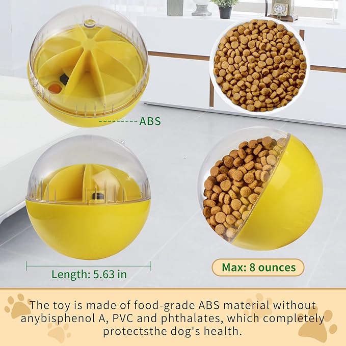 - đŸăSafety and Harmless MaterialăWobble ball is made from food grade ABS+PC which are safeădurable and non-toxic. With raw materials and design safe, you can rest assured to use it for dogs. Anyway, please feel free to contact us if you have any problems with this dog treat ball.