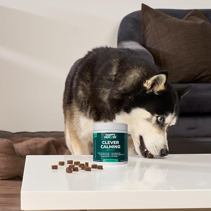 - TOTAL TRANQUILITY AWAITS: Elevate your dog's well-being with Happy Heroes Clever Calming chews. Crafted with 100% natural ingredients, our calming chews for dogs provide the ultimate zen formula, supporting anxiety, stress, fear and hyperactivity and reactivity for our furry friends.