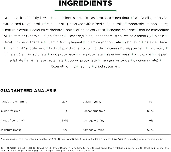 Go! Solutions Sensitivities Limited Ingredients, Grain-Free Dry Dog Food, Insect Recipe for Sensitive Stomach, 22 lb Bag