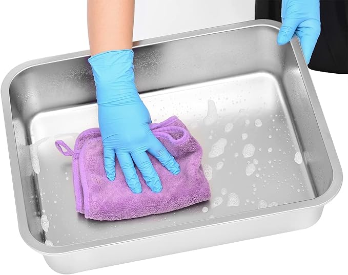 Kichwit Large Stainless Steel Cat Litter Box with High Sides, Metal Litter Pan for Cat, Non Stick Smooth Surface, Easy to Clean (17.5" L x 13.5" W x 7.9" H)