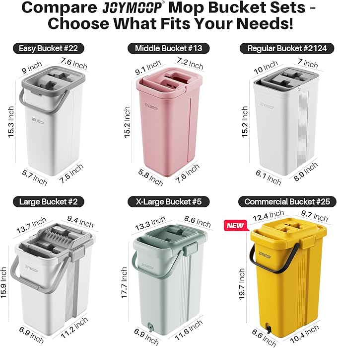 - [Large Mop Bucket with Bottom Drain Hole] New style large flat mop Bucket! [Bucket's Size] 13.3"x8.6"x17.7". [Color] White. Hold more water and suitable for a deep clean and dry. Even more, with a Bottom Drain Hole the used water can be clear without Hands touching! Faster and more convenient