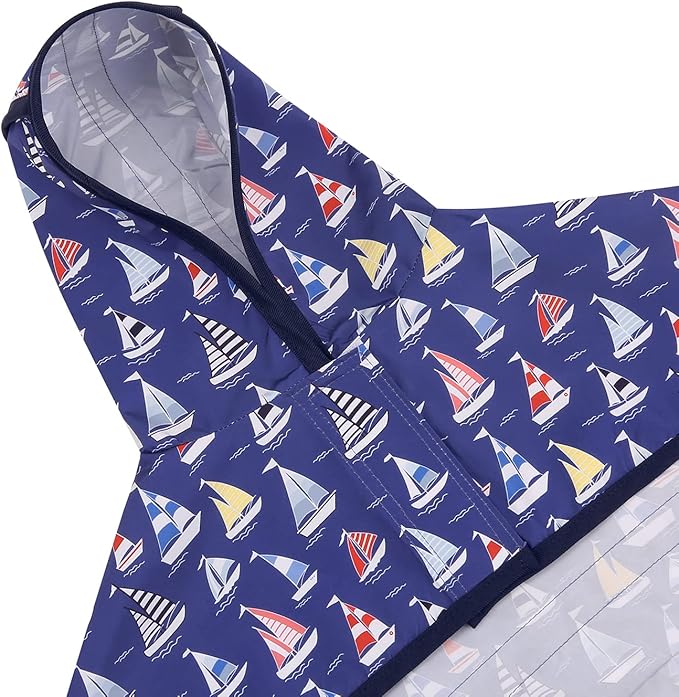 HDE Dog Raincoat Jacket Reflective Adjustable Hooded Pet Poncho Rain Coat with Leash Hole for Small to X-Large Dogs Nautical Boats - M