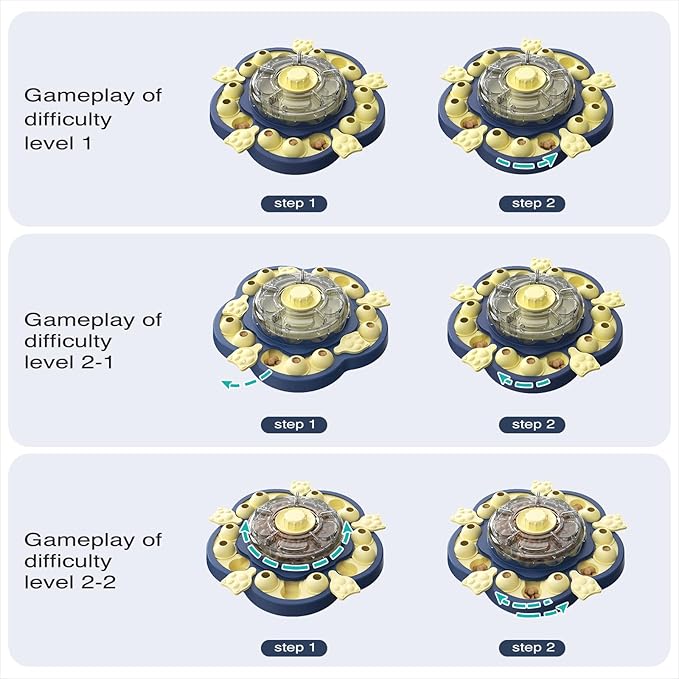 - [Perfect Puzzle Toy for Mental Engagement] This interactive puzzle toy integrates three difficulty levels and a total of four exciting play modes, which challenge your dog and keep them engaged. With each difficulty level, your dog will be rewarded with treats as they solve problems, promoting their brain development and enhancing their cognitive abilities. Whether they are a beginner or an advanced learner, this toy is perfect for relieving anxiety, boosting emotional stability, and strengthening your dog’s bond with the family, while helping them stay mentally sharp.