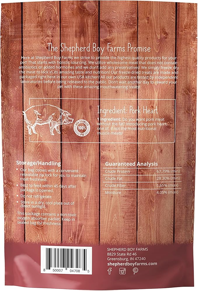 Freeze Dried Dog and Cat Treats, Pork Heart, All Natural Single Ingredient Freeze-Dried Treat & Snacks, Made in USA, High Protein, Essential Nutrition of Raw Dog Food, 8oz