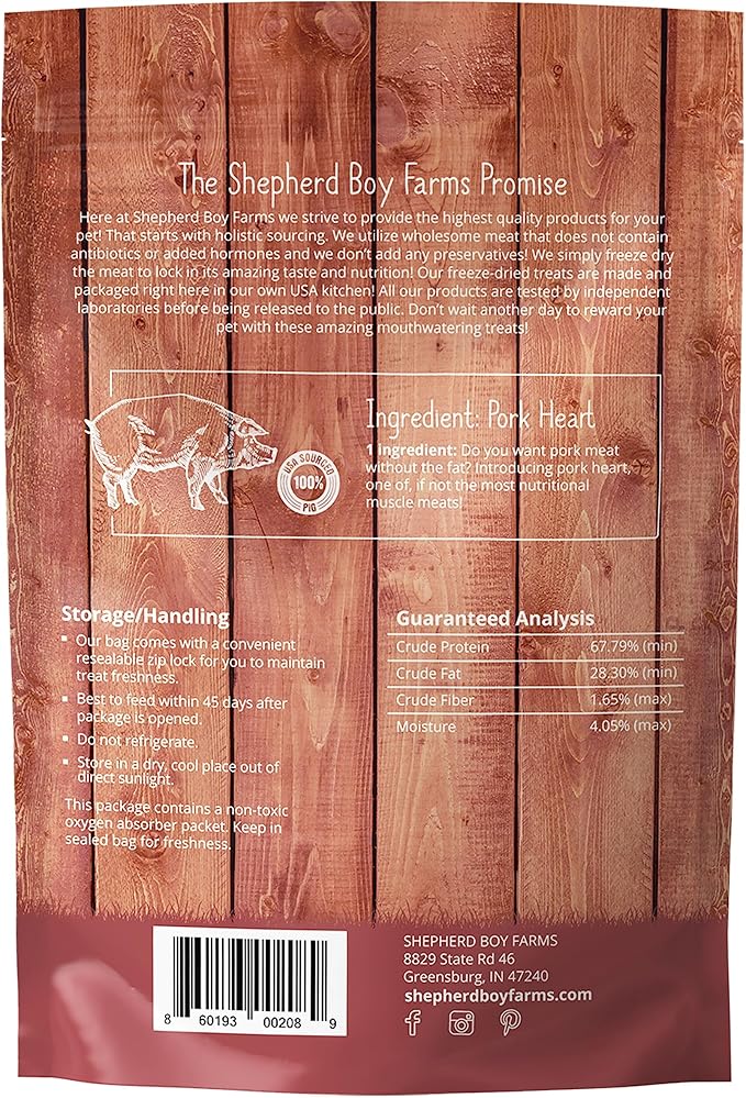 Freeze Dried Dog and Cat Treats, Pork Heart, All Natural Single Ingredient Freeze-Dried Dog Treat & Snacks, Made in USA, High Protein, Essential Nutrition of Raw Food, 3oz