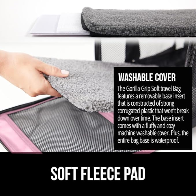 GORILLA GRIP Cat Carrier Travel Bag Up to 15 Lbs, Soft Collapsible Small Dog Carriers, Top and Side Entry Breathable Mesh, Grip Feet on Underside, Cozy Washable Waterproof Pad, Portable Kennel, Pink