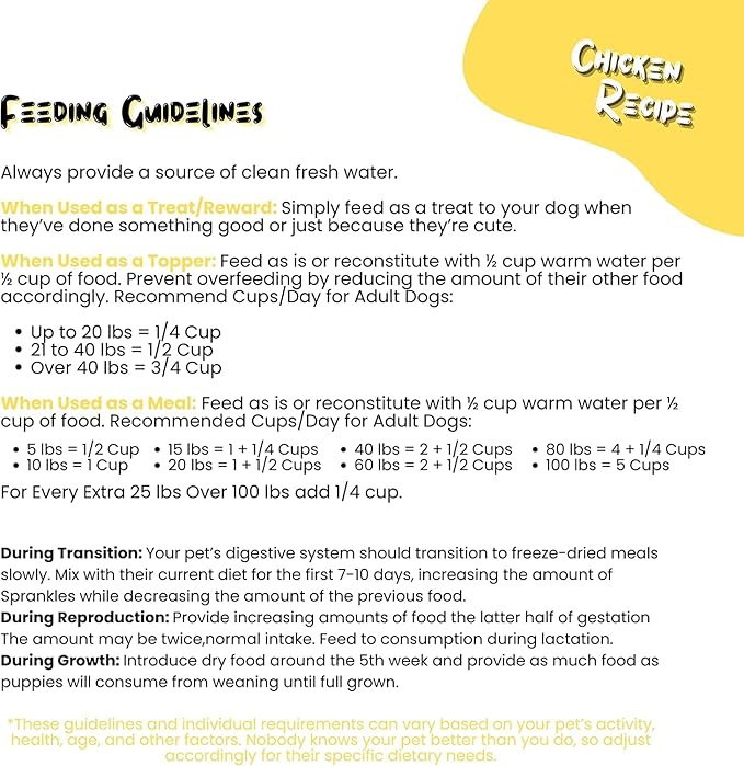- Complete Meal, Toppers or Treat: A scoop of our Sprankles Dog Food Toppers offers all the vitamins and minerals your dog needs for a healthy diet, perfect for serving as a meal, a mixer, or a scrumptious freeze dried dog treats.