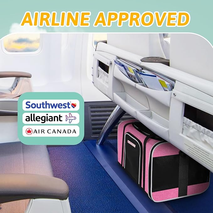 Petskd Pet Carrier 17x13x9.5 Southwest Airline Approved,Pet Travel Carrier Bag for Small Cats and Dogs, Soft Dog Carrier for 1-15 LBS Pets,Dog Cat Carrier with Safety Lock Zipper (Pink)