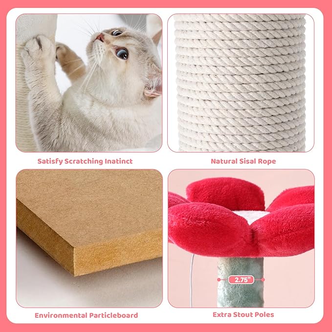- Cute Flower Design:The flower-shaped cat tree features a collapsible design, making it a space-saving cat furniture piece. Its modern aesthetic blends seamlessly with home decor, creating a stylish cat playground for your pets.