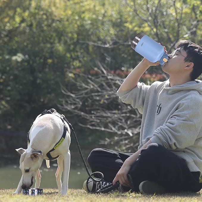 - 【Great for Outdoors】Our travel dog water fountain comes with a unique safety lock design, which ensures your safety during use and avoids accidental opening. Equipped with an independent human drinking spout to ensure a clean and hygienic drinking experience. Our easy-grip handle makes traveling with your pet even easier.