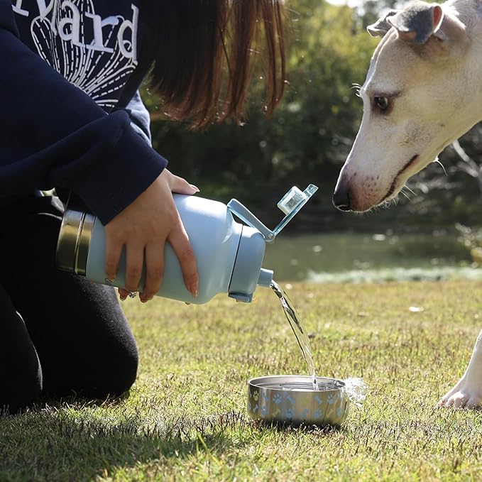 - 【DOG MUST HAVES】The GiNT dog water bottle has a capacity of 37 ounces, comes with a detachable water bowl and easy-to-carry carrying bag. All stainless steel hot and cold pet water bottle allows both your pet and you to enjoy a refreshing cold drink. This will be one of the best dog walking accessories.