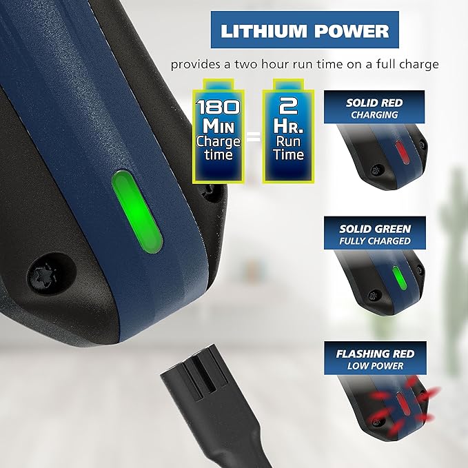 - Cordless Operation – The power of a corded pet clipper with the convenience of a cordless; The 2 hour cordless runtime from a full charge provides enough power for a long grooming session