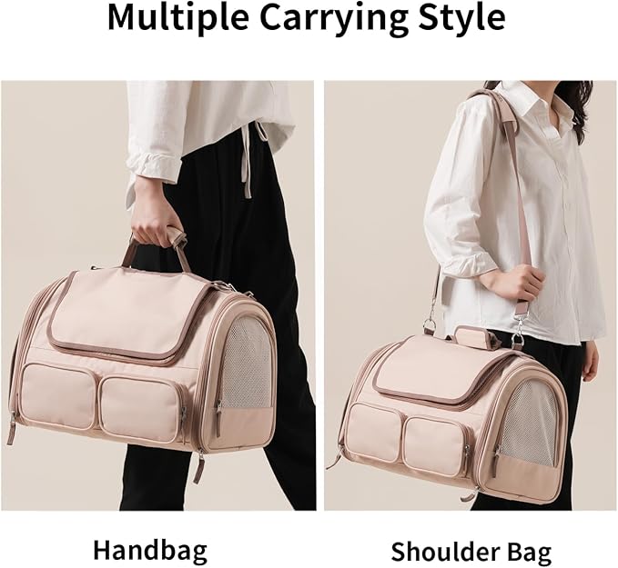 - Easy Access & Ventilated - Updated to 4 entry doors, mesh windows on 2 top and 2 sides creating breathability and two-way visibility. All enters in this cat travel bag have zippers for easy pet loading with more comfortable, also veterinarian friendly.