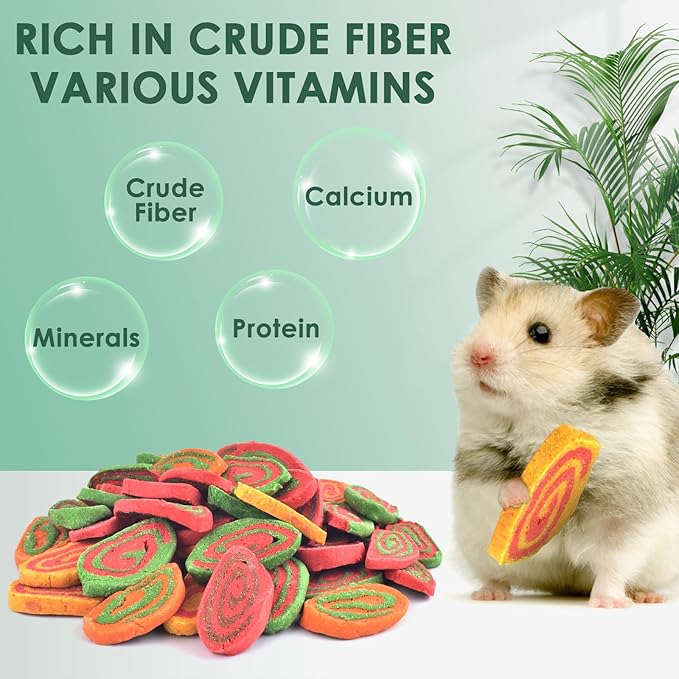 - NUTRITIONAL & MOLAR: Rich in fiber, protein and multiple vitamins, which can support the muscle and bone development of young and growing rabbits. Cute shape and perfect size help hamster to nibble easily, thus keep teeth in good shape, relieve boredom and improve appetite as well.