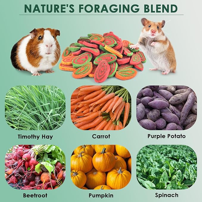 - NATURAL RABBIT TREATS: Made of carrot, timothy grass, purple potato, pumpkin, beetroot and spinach, through high temperature baked into multi-taste of hardness snacks, provide a better role in teeth grinding.
