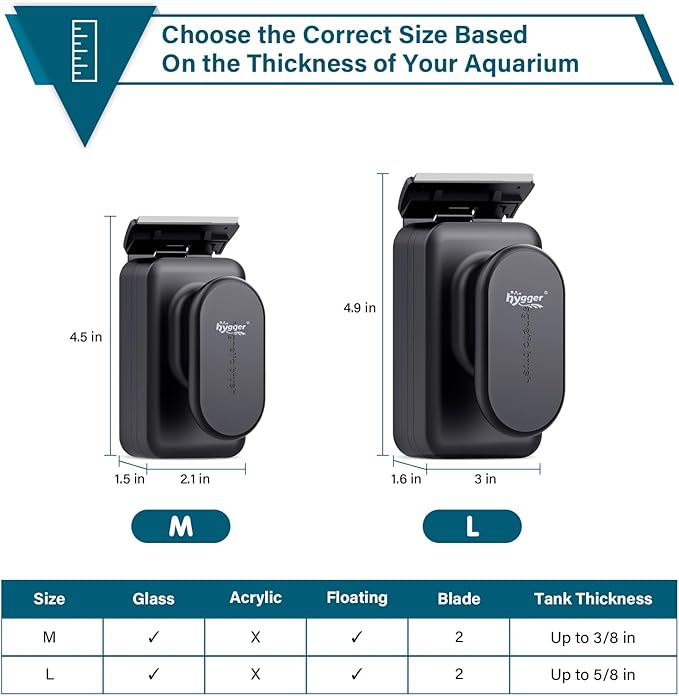 - Detachable Scraper: hygger aquarium glass cleaner comes with plastic and stainless steel blades that can more effectively get the algae buildup off the fish tank. It can be quickly replaced by just pressing and pushing the scraper out. Please be careful with your hand when you replace the sharp blade