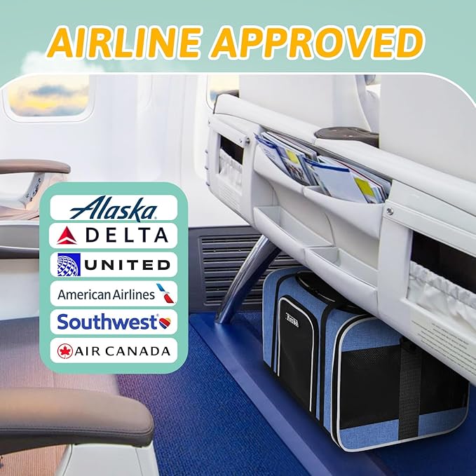 Petskd Pet Carrier 17x11x9.5 Alaska Airline Approved,Pet Travel Carrier Bag for Small Cats and Dogs, Soft Dog Carrier for 1-10 LBS Pets,Dog Cat Carrier with Safety Lock Zipper(Blue)
