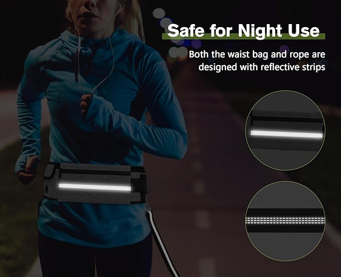 - 【New Design - Lightweight Version】Waist bag + leash weighing only 320g/0.7lb, making the waist protection more lightweight. The waist bag is equipped with a sponge to effectively relieve pressure. The small waist bag can also accommodate smartphones, water bottles, keys, money, cards, garbage bags, and other essentials. It is perfect for hiking and running. The waist belt is adjustable (60cm/23.6"---127cm/50") to fit different body types.